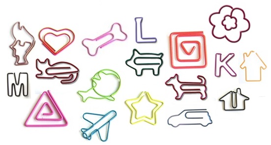 Denk bv. aan paperclips in de vorm van een vliegtuig, voor reisburo´s of luchtvaartmaatschappijen. De gevormde paperclips in de vorm van een zon, voor vakantie gerelateerde bedrijven, de gevormde paperclips auto voor autobedrijven of de clips met een kuif voor de kappers. Voor iedereen is er wel een gewenste vorm.
